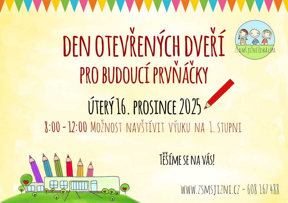 Zobrazit článekPro školní rok 2019/2020 zápis proběhne v pátek 5. dubna 2019 od 14 do 18 hodin. Pokud se ze závažných důvodů (nemoc) nemůžete v tento den dostavit, je možné si domluvit individuální zápis (na tel. čísle 487 829 310 nebo 608 167 488).